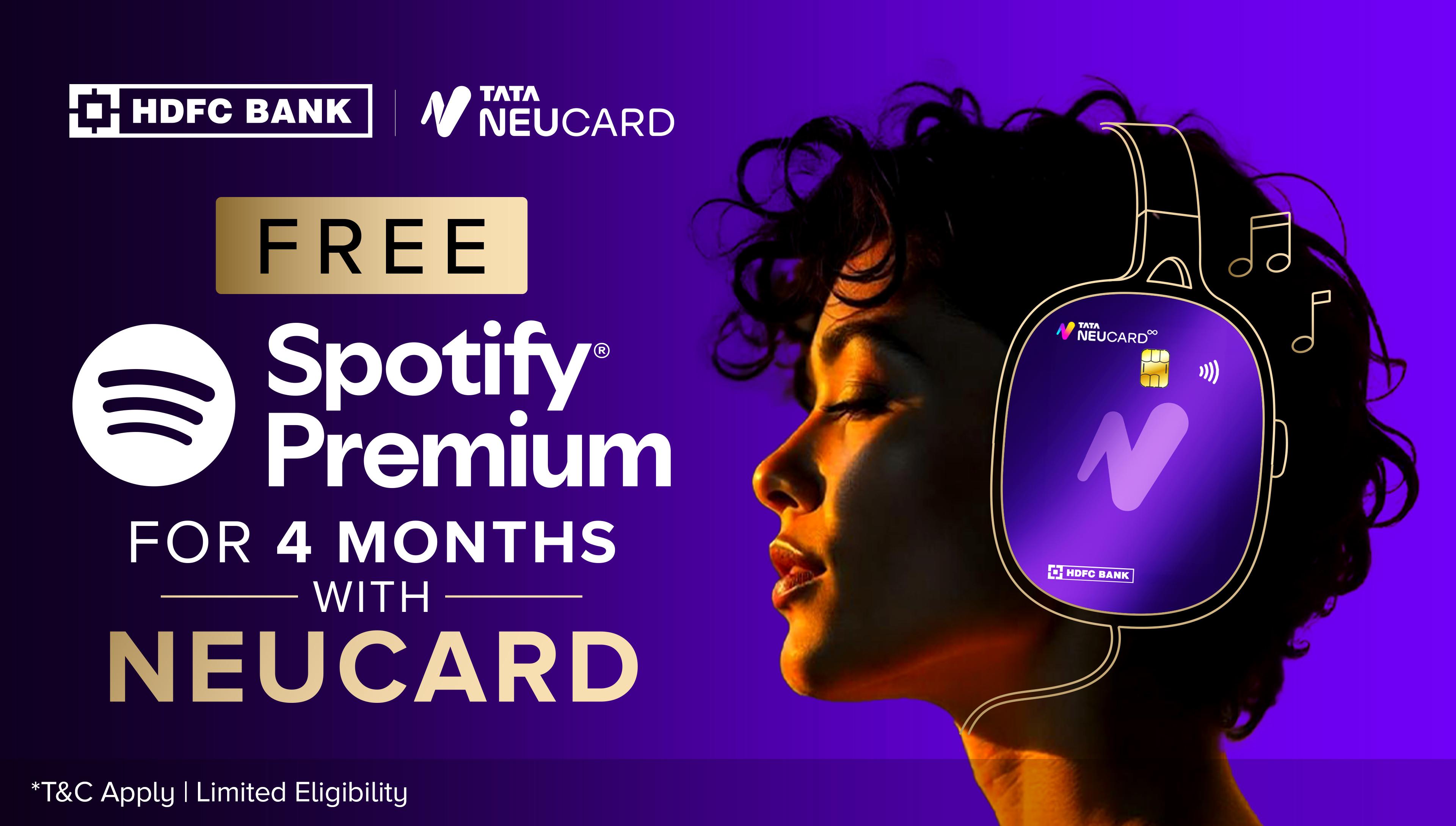 Tata Digital* has partnered with Spotify to offer its Tata Neu HDFC Bank credit card (NeuCard) holders a valuable offer. Starting today, NeuCard holders will enjoy four months of complimentary subscription of Spotify Premium, gaining access to an uninterrupted world of music and offline listening. This partnership reinforces Tata Neu's commitment to create a comprehensive lifestyle ecosystem for its users.